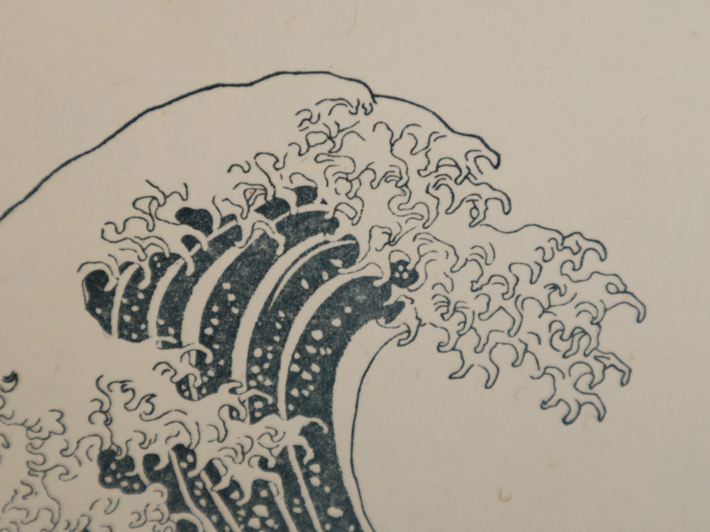 我々摺師は馬連でこれを力一杯摺りますので色がついている部分は必然的に凹みます。この凹みにより抜けた白色が物理的にも浮き出て立体感が出ています。