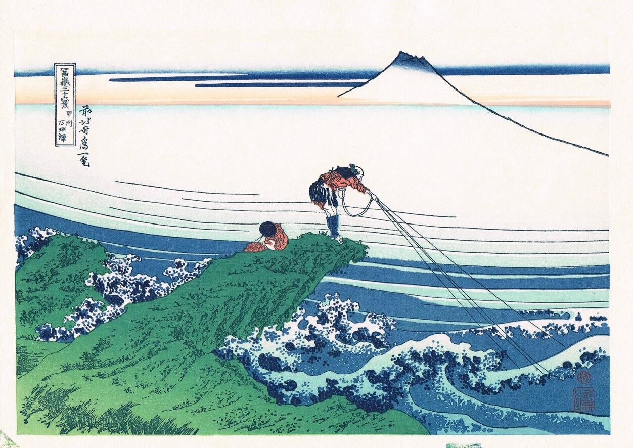 葛飾北斎筆 冨嶽三十六景の一つ、石班沢です。