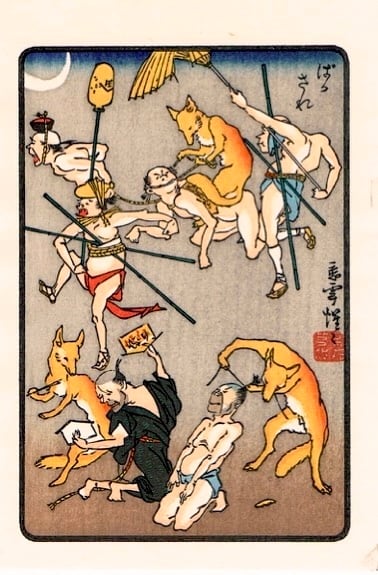 河鍋暁斎筆 狂斎百図『ばかされ』復刻版手摺り木版画