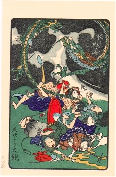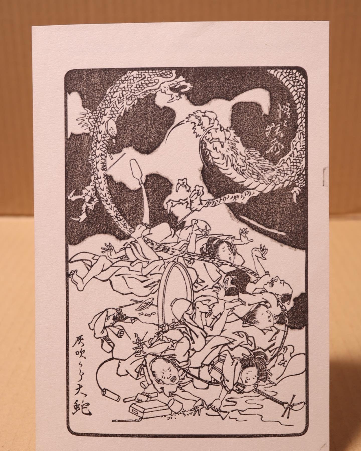 河鍋暁斎筆 狂斎百図『灰吹から大蛇』復刻版手摺り木版画
